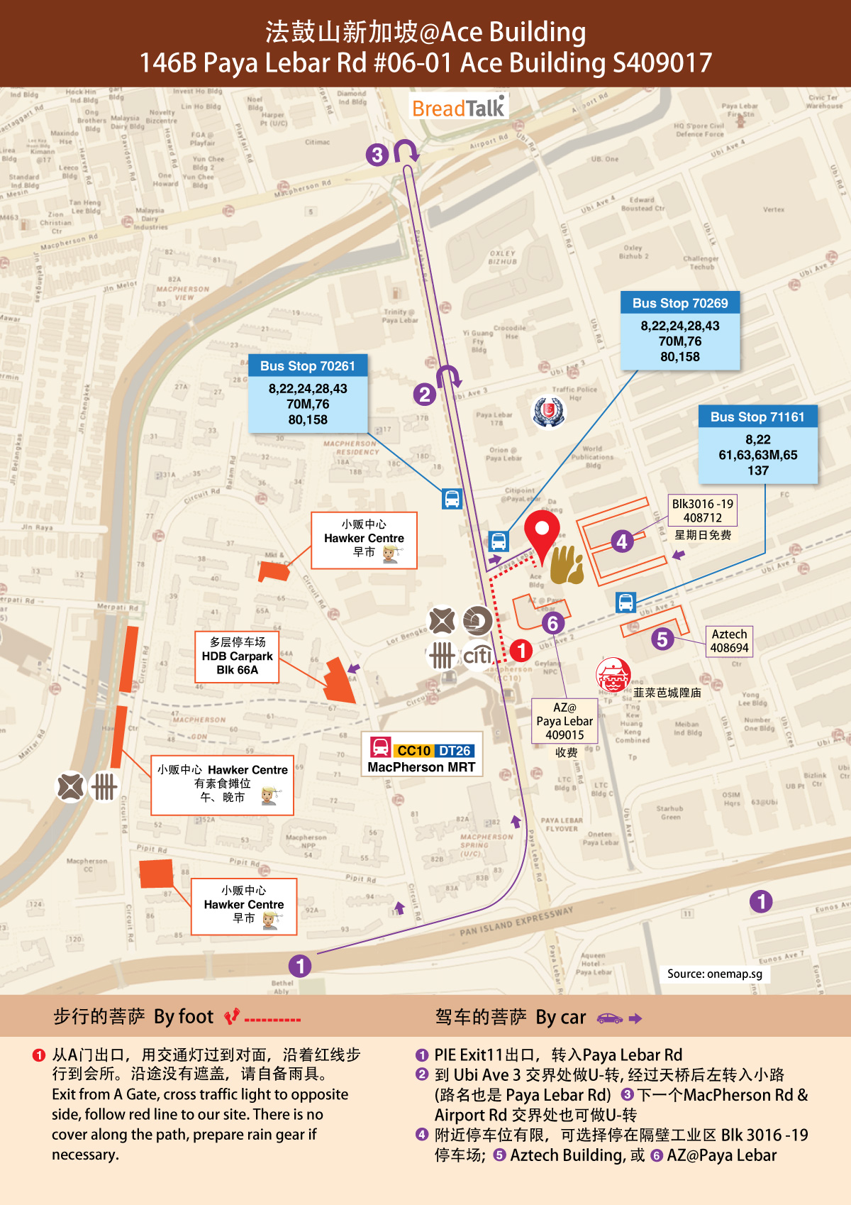 Please park in the open air parking lots around the building, within the property vicinity, OR we suggest, to park at nearby industrial buildings Blk 3016-3019, Ubi Road 1, Postal Code 408712.