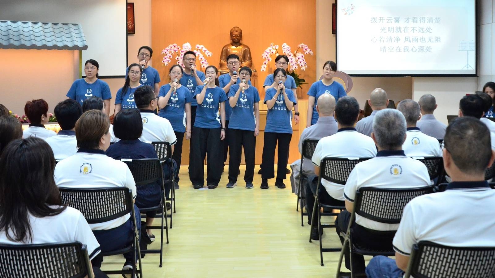 法青们以一首圣严师父作词的佛曲《菩萨行》作为仪式的开始。伴随着歌声,悦众及义工代表们传递刻着「有大愿力」四字的篮球,象征众人以团队力量从1996年开始的护法因缘,代代相传,愿愿相续直到今天。篮球在众人手中安稳而坚定地传递,每一双手都是愿力的载体,每一次传递都是善念的接力,场面庄严,殊胜感人。